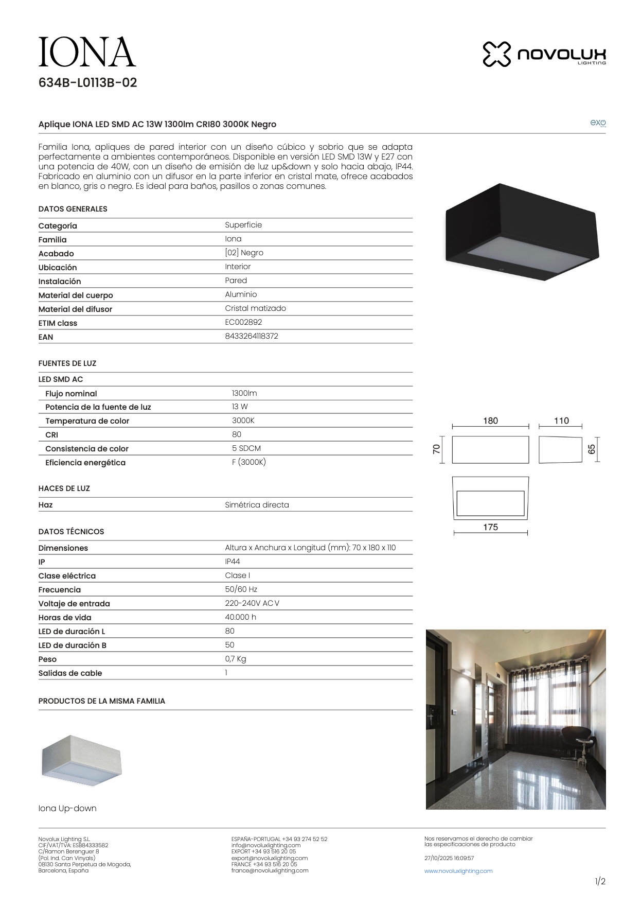 L’applique IONA séduit par ses lignes simples et son style minimaliste, parfait pour les intérieurs modernes. Elle diffuse une lumière douce vers le haut et le bas, créant une ambiance élégante et équilibrée.