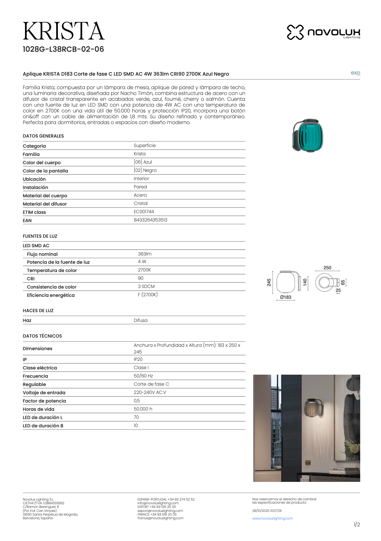 L’applique Krista allie la transparence du verre à l’élégance du métal. Son diffuseur crée de subtils jeux de lumière, parfaits pour habiller un mur avec sophistication et modernité.