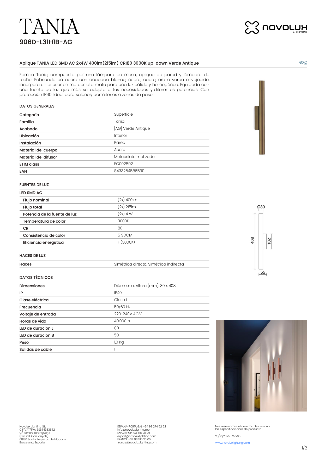 La famille TANIA se distingue par son design cylindrique moderne et sa finition haut de gamme déclinée en blanc, noir, cuivre, or ou vert vieilli. Cette applique murale s’intègre avec élégance dans les salons, chambres ou espaces de passage.