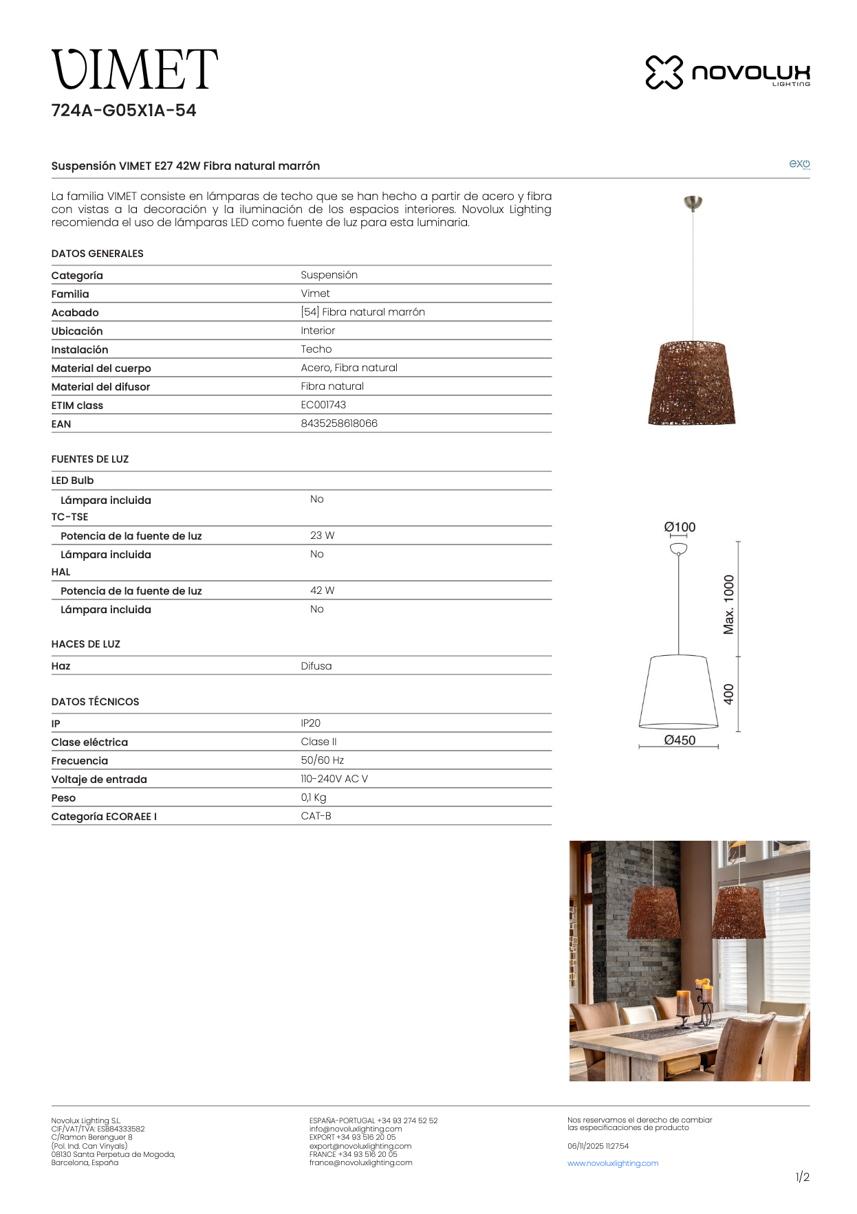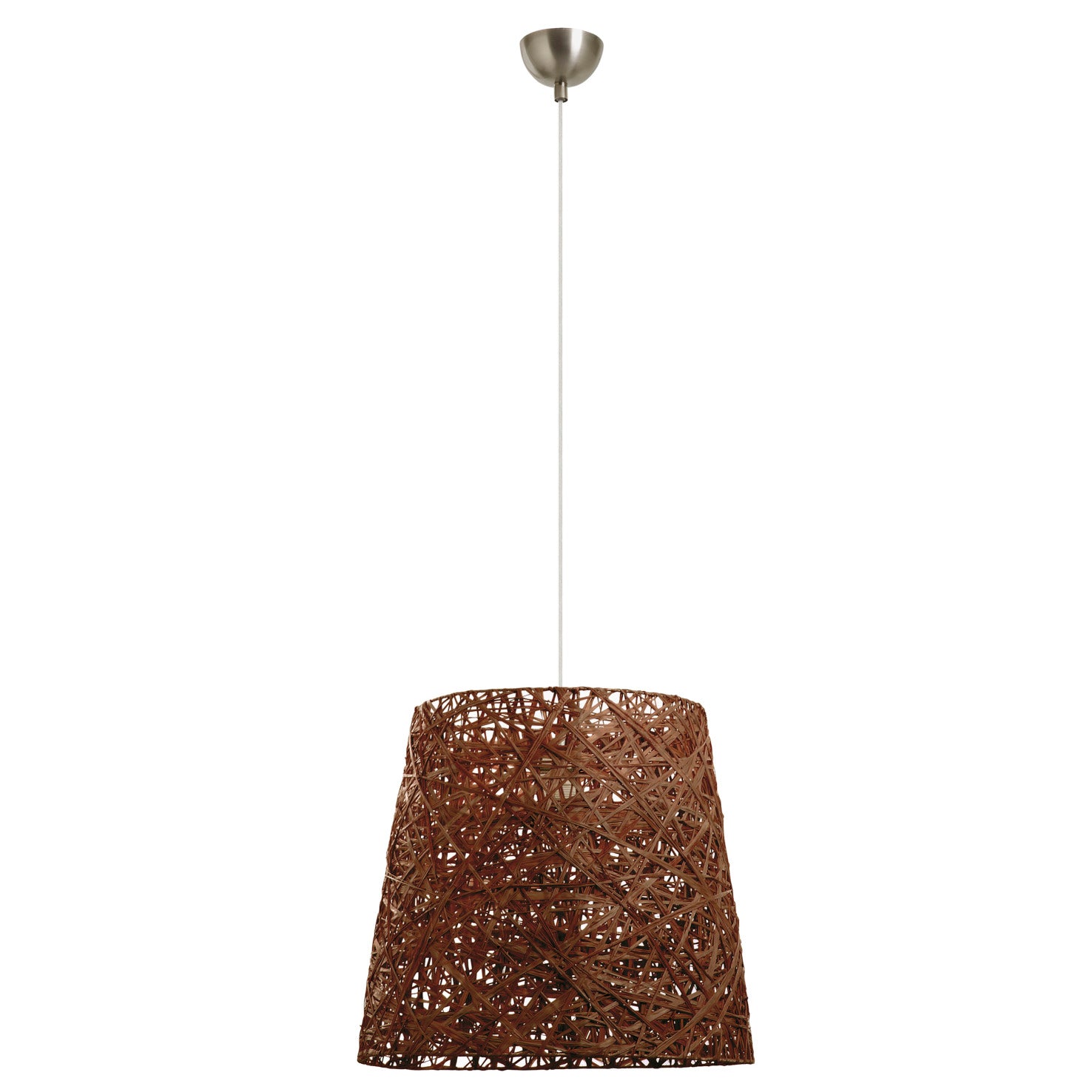 La suspension VIMET est conçue à partir de fibres naturelles tressées, offrant un design organique et une texture raffinée qui évoque la nature et le savoir-faire artisanal. Sa finition brun naturel apporte une ambiance douce et accueillante à tout espace intérieur.