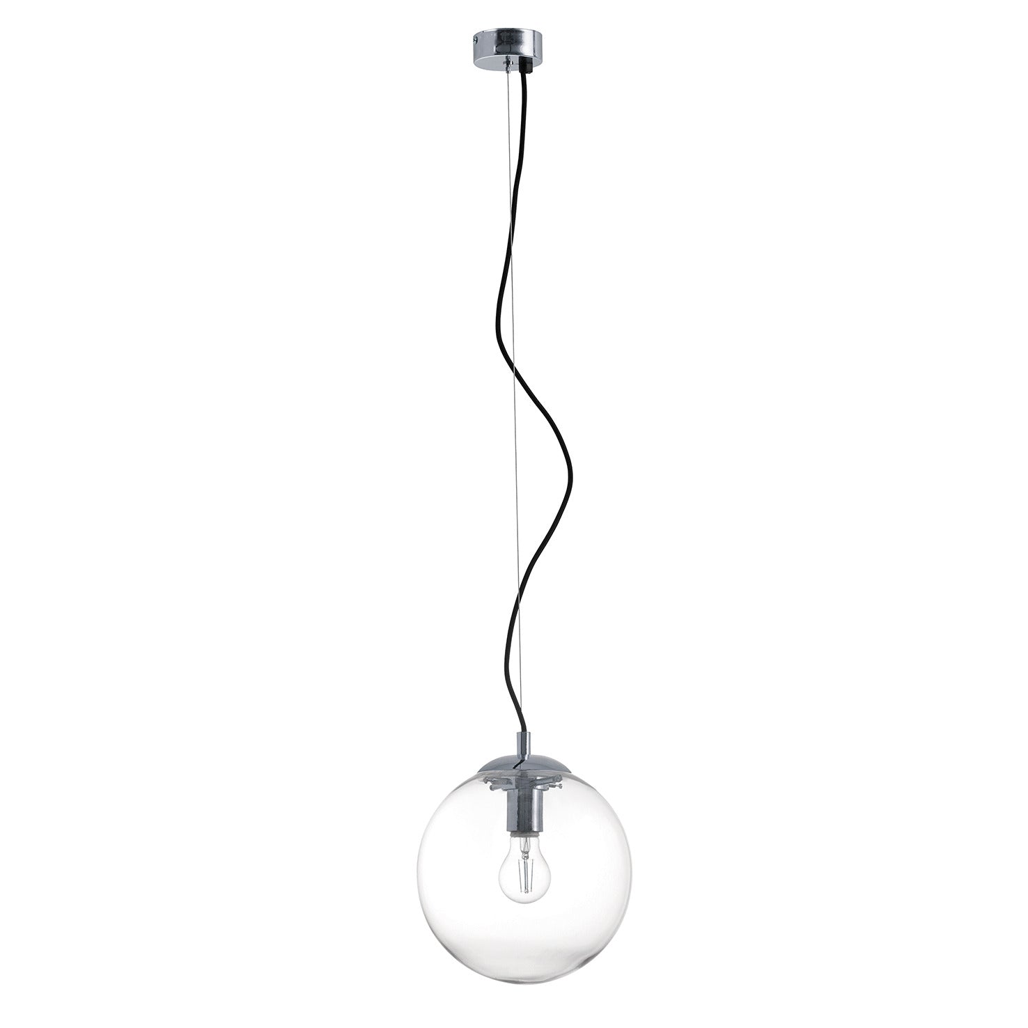 Cette suspension en verre transparent séduit par sa pureté et son minimalisme. Son globe en verre soufflé associé à une finition chromée apporte une touche raffinée et contemporaine à tout intérieur.